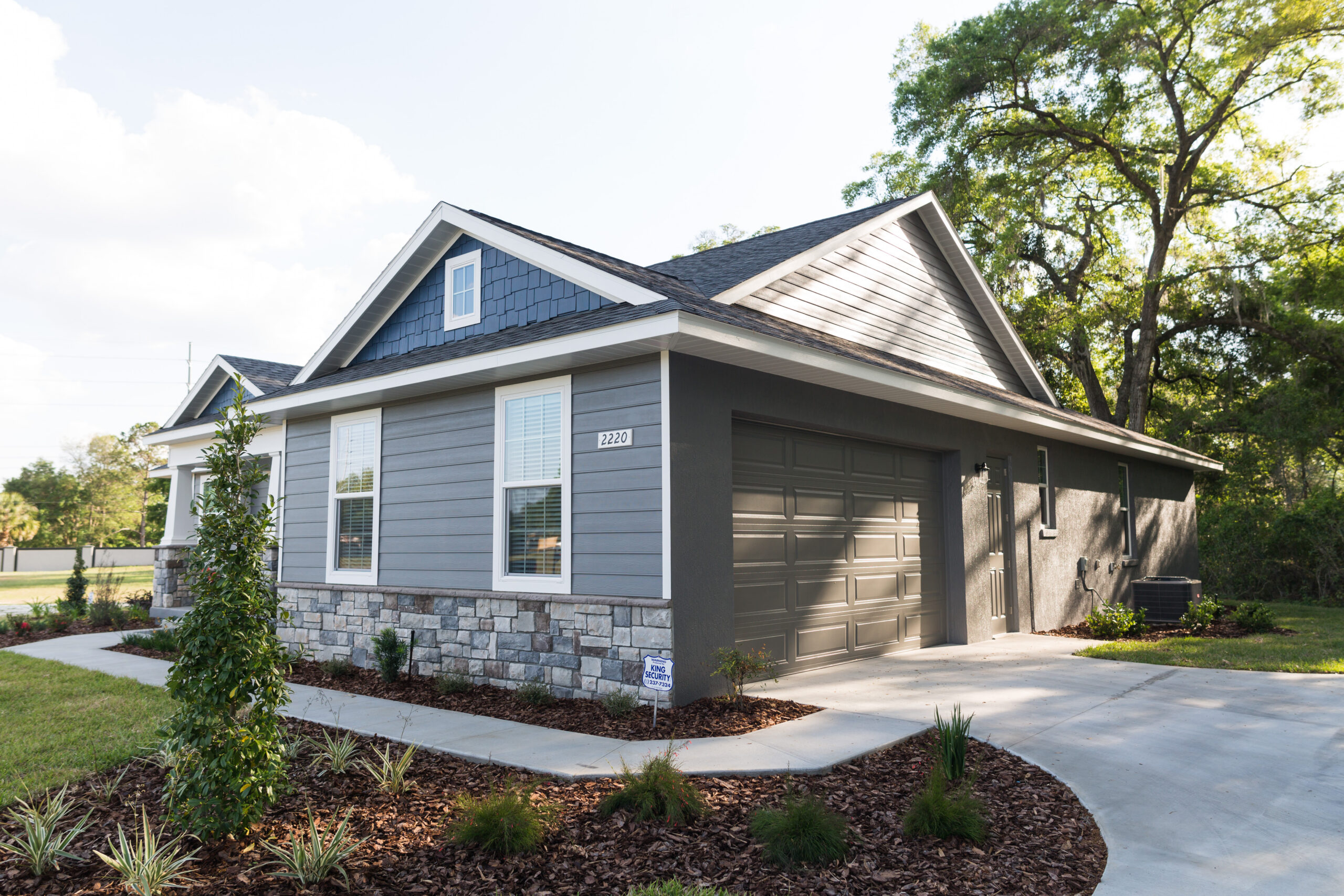 Gabled or metal roofing combined with natural materials—such as wood, stone, and board-and-batten siding—give these homes a durable structure and a signature rustic look that stands out in Florida landscapes.
